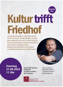 Am Tag des Friedhofs, 21.09.2025, um 11 Uhr heißt es wieder Kultur trifft Friedhof: Dieses Jahr freuen wir uns auf den deutschen Theater- und Filmschauspieler Oliver Fleischer.